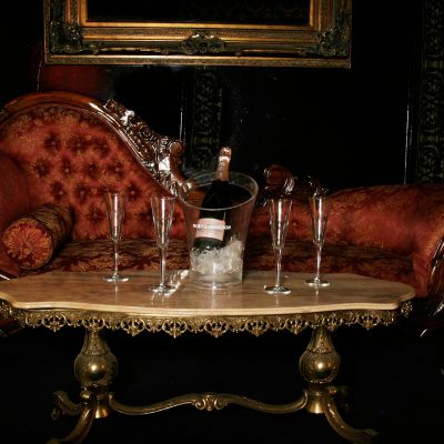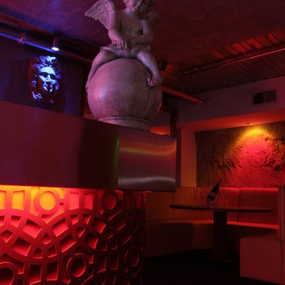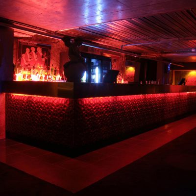 Interior design and styling of exclusive subterranean nightclub featuring a sumptuous bar and private function room.