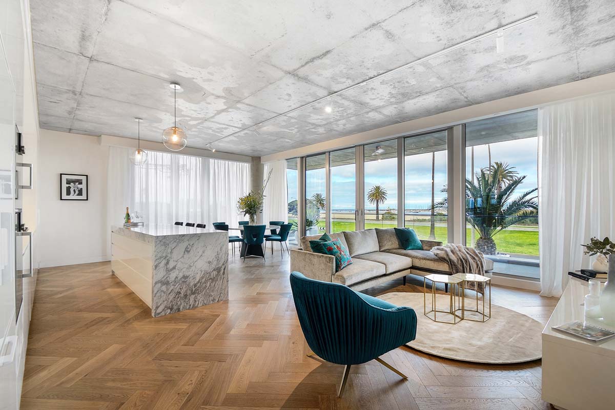 Fiona Barker Design provided a full interior design service, specifying all fixtures, fittings, finishes and furniture for this luxury residence at Espace, Middle Park.