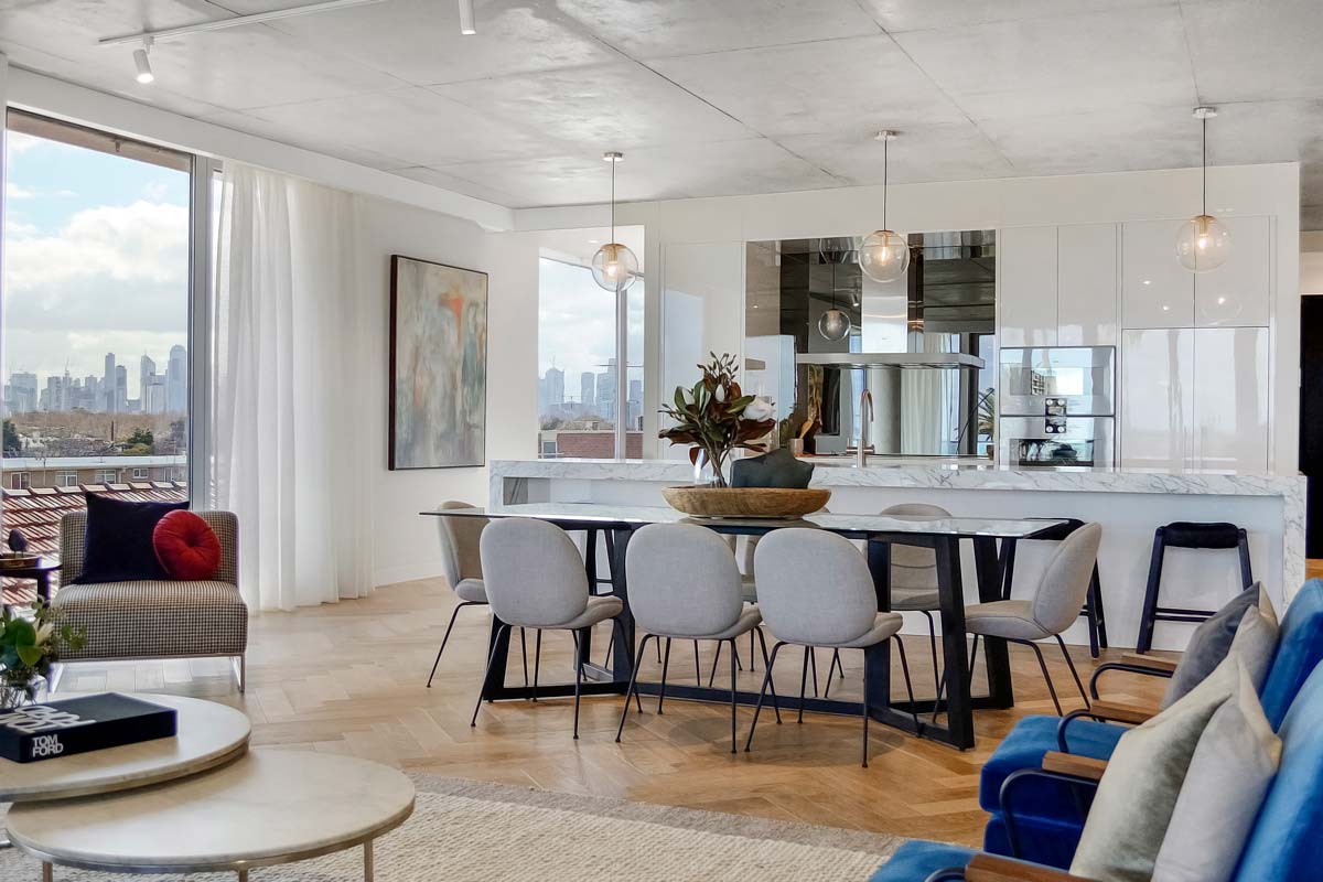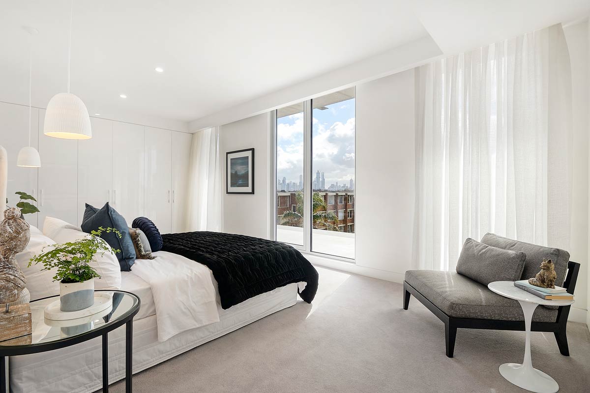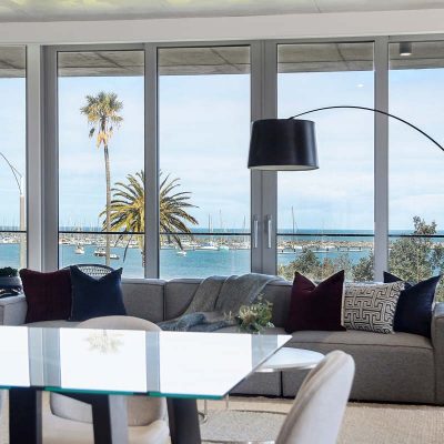 Espace Sub Penthouse 16 has a front row seat to spectacular views across Port Philip Bay round to Melbourne's CBD skyline. Here the interiors are second only to the view, creating a feeling of light and space. Fiona Barker Design provided a full interior design service, specifying all fixtures, fittings, finishes and furniture.