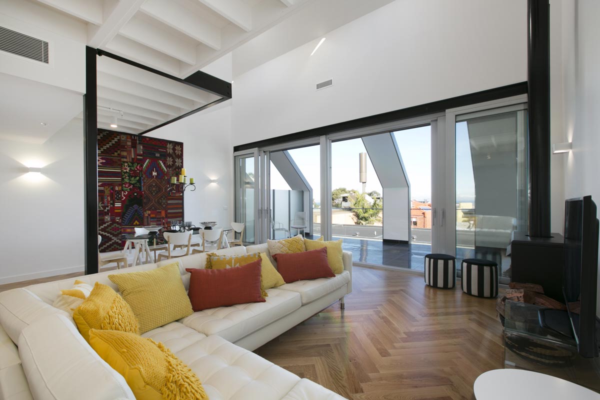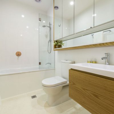 Unique project of 67 apartments across four distinctively different build styles: heritage, townhouse, contemporary and stables. Interior design and styling for each apartment complemented the building it was in. This apartment is in the contemporary building.